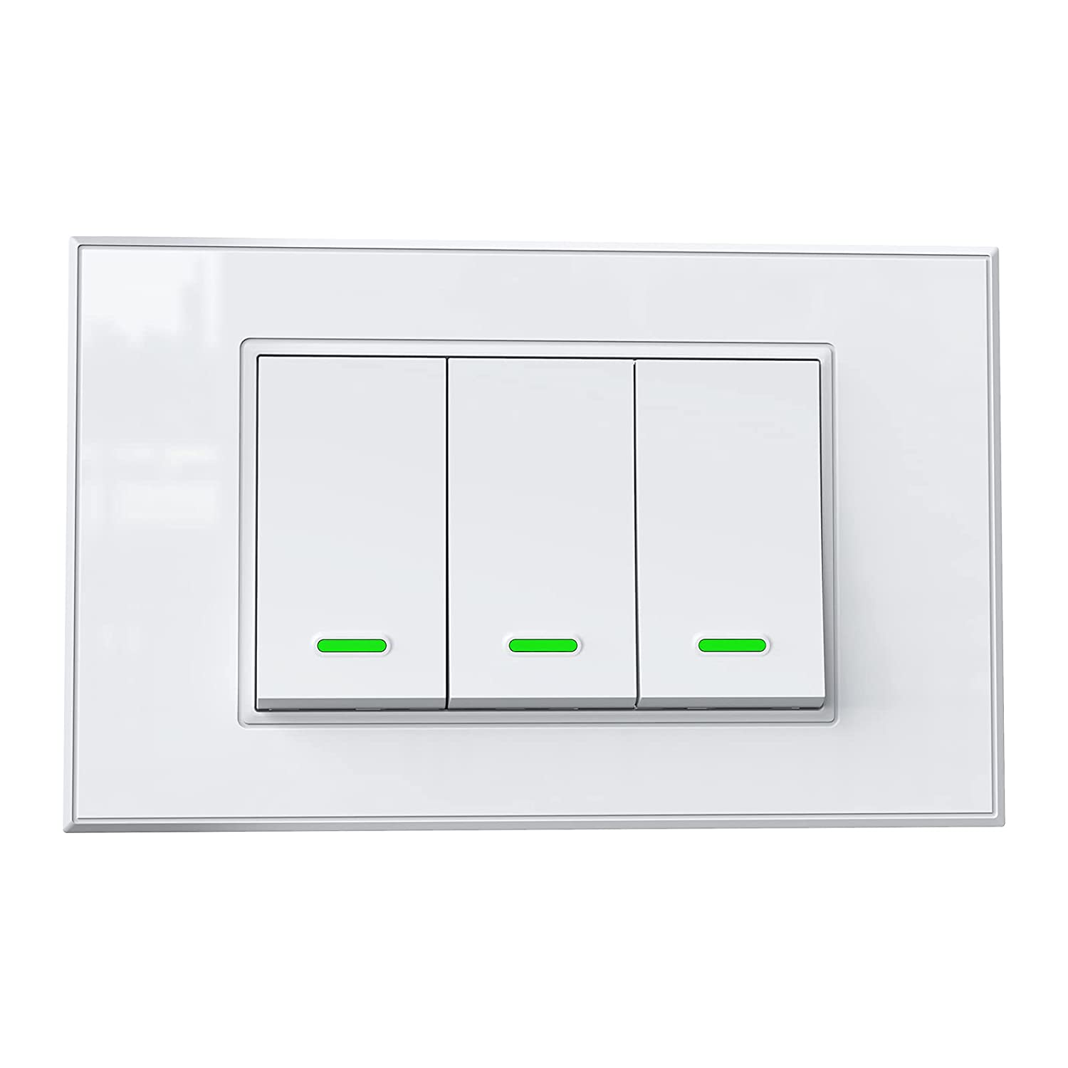 In commercio si trova il modulo interruttore wifi completo, da installare in sostituzione di frutti, portafrutti e placca. Sono disponibili a uno, due o tre interruttori. Il modulo possiede il collegamento wifi ed è possibile connetterlo con Alexa o Google Home oltre che a diverse app di domotica (che vedremo più avanti).